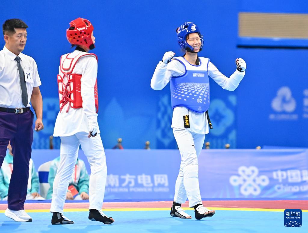 当日,第十五届全运会跆拳道项目女子49公斤级铜牌赛在广东惠州举行。
